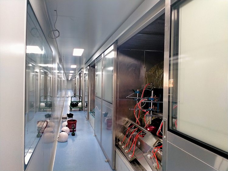 噴漆分為單層和多層漆,又分為底涂、中涂漆、面涂漆,漆面顧名思議就是最后一道工藝,面漆也是最為關(guān)鍵的一道工藝,如果在進行面漆的時候,一旦頭盔表面有細(xì)小的顆粒,在噴漆完成后,將會使頭盔表面留下瑕疵,且是無法修復(fù)的,只能算是一個次品了。專業(yè)品質(zhì)的頭盔生產(chǎn)線廠家都會在最后的噴漆工藝上下功能,除了常規(guī)的打磨、做底之外,在面漆的環(huán)境上尤其注重。常規(guī)的做法是采用G45的初效進行過濾處理,再經(jīng)過F8的中效處理,再上一個檔次,廠家會要求H13的高效過濾器的處理,這個是按照0.3μm的灰塵過濾效率達到99,995%,至少達到行業(yè)高標(biāo)準(zhǔn)的30萬級凈化要求。下圖為易純公司為浙江云紅科技安裝的30萬級噴漆線的凈化車間安裝,目前已經(jīng)正式投入生產(chǎn)。